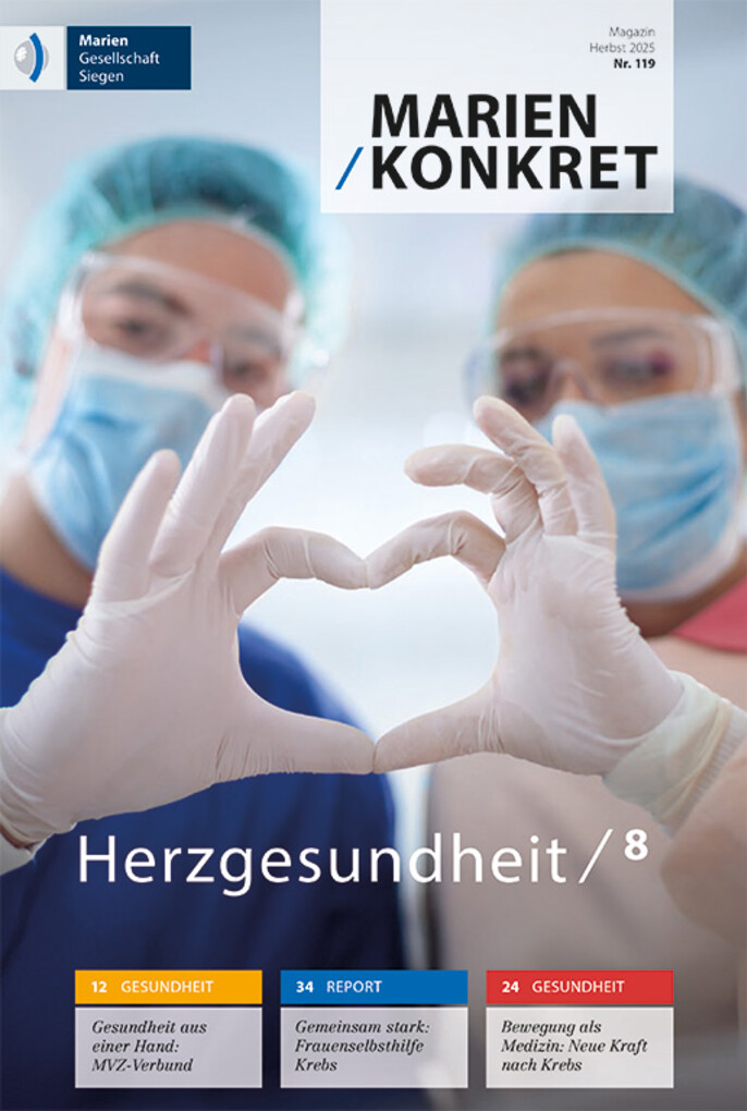 Der Herbst ist da – und mit ihm eine neue Ausgabe unserer MARIEN KONKRET. Während draußen die Blätter bunt werden und die Tage kürzer, ist bei uns jede Menge in Bewegung. Diese Ausgabe zeigt mal wieder, wie vielfältig das Leben in der Marien Gesellschaft Siegen ist: von sportlichen Aktionen über spannende Forschungsarbeiten bis hin zu ganz persönlichen Geschichten, in denen deutlich wird, wie unsere Mitarbeitenden mit ihrem Engagement und ihrer Kreativität unser Unternehmen prägen. Besonders freue ich mich, dass wir zahlreiche neue Auszubildende willkommen heißen dürfen. Sie bringen frische Ideen und Tatkraft mit. Das macht unser Unternehmen zukunfts- fest und lebendig.